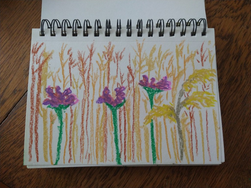 I know Autumn is knocking on the door when I see these purple flowers in the fields around my town. The goldenrod may make me sneeze but the sight of the yellow, gold, and purple makes my heart sing.