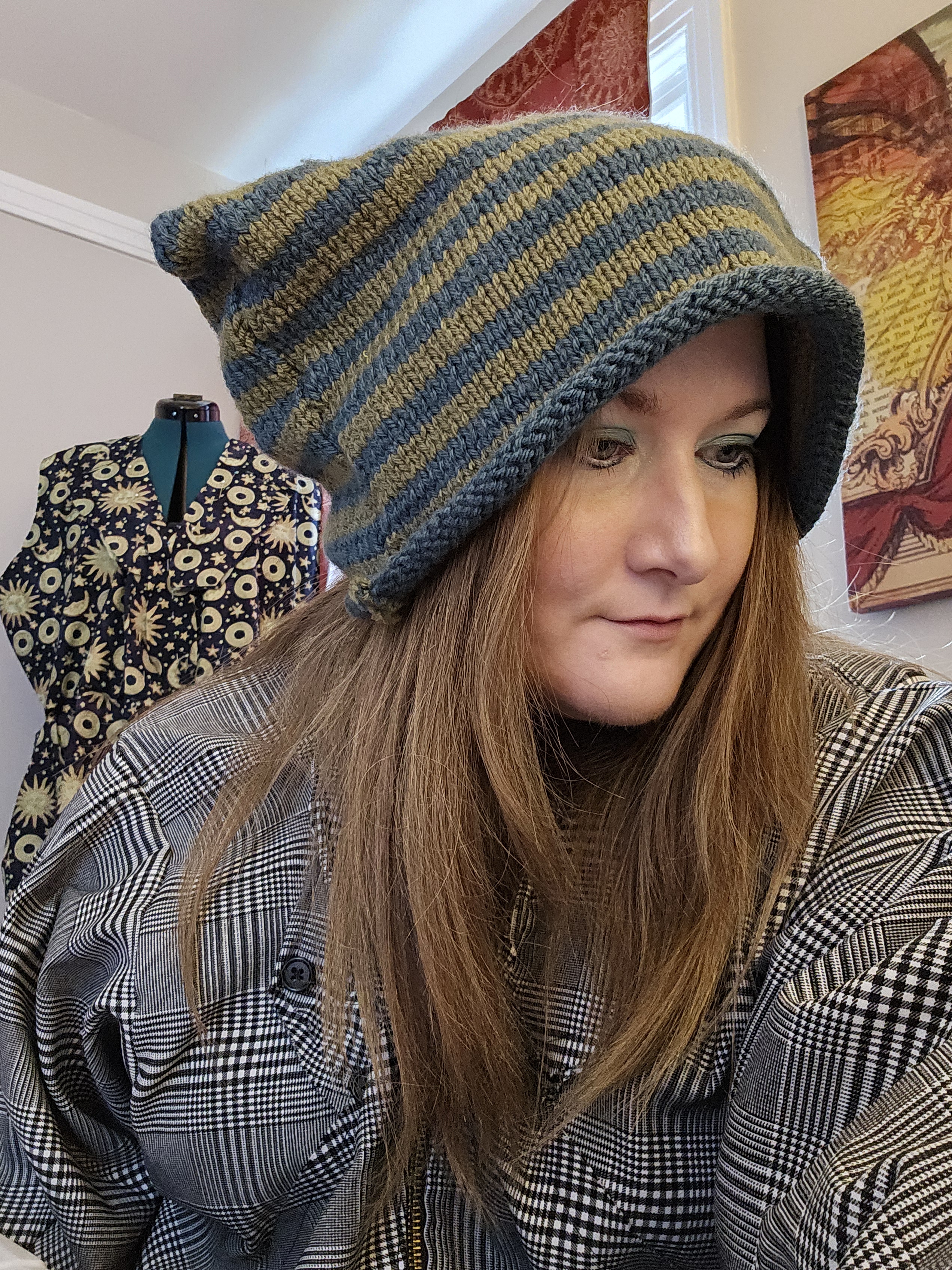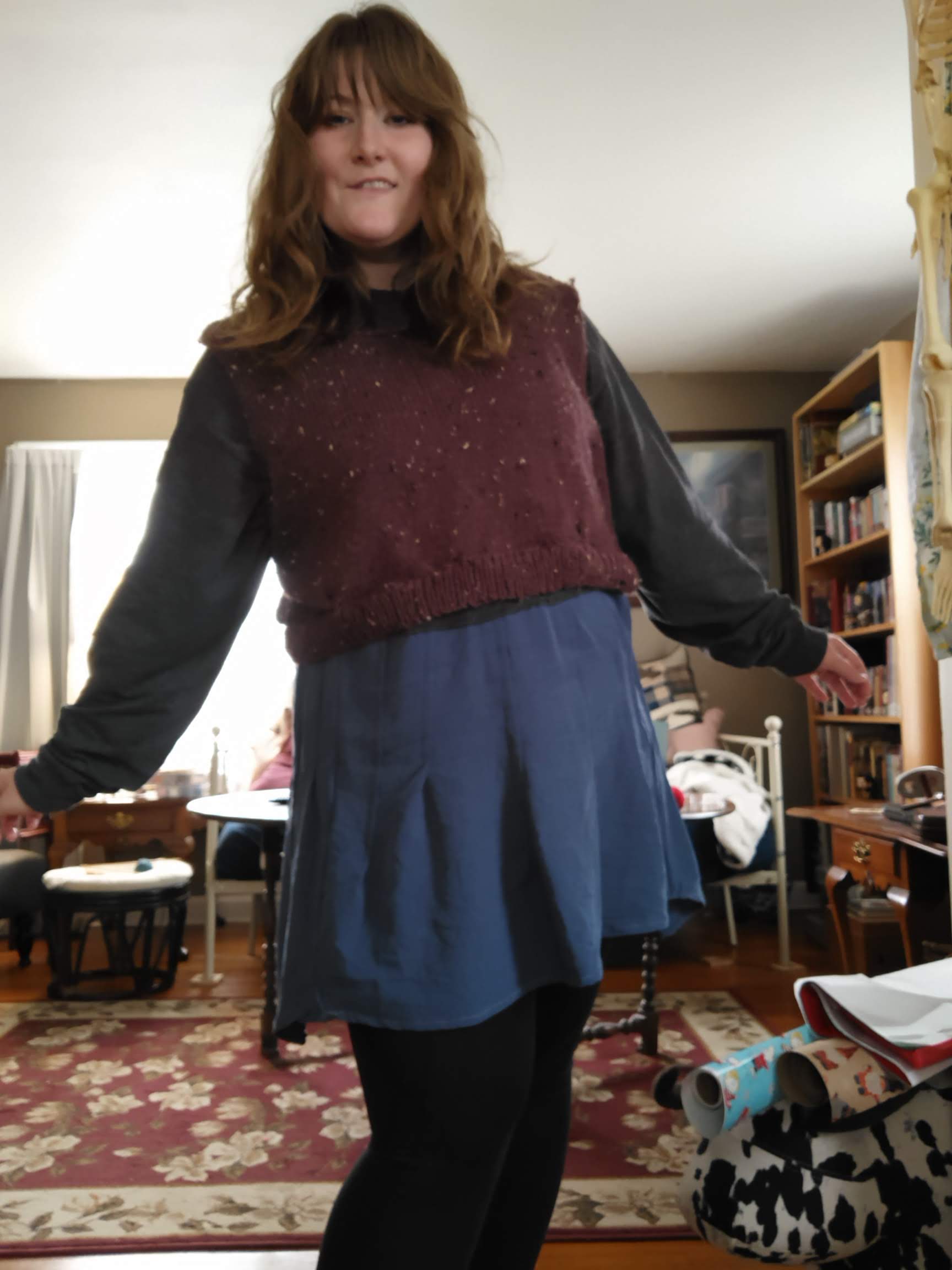 These pieces were made two years apart and yet I think they fit seamlessly together even though they were not planned. None of my knitting pieces from 2023 onward were planned because I decided to quit knitting in 2021 and was feeling pretty lost and frustrated in 2022. Knitting became a place of competition with my mom, a comparison with more advanced knitters, and a direct competitor to my sewing process.