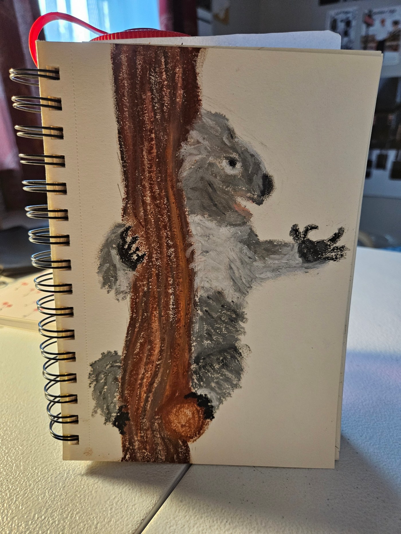 I finished my koala portrait from Koala Drawings in Pencil in a new medium, well a new old medium, a medium I haven’t used in 10 years, oil pastel! I forgot how good oil pastels are for color payoff and texture without being messy like chalk pastels or watercolors. I felt in control of the pigment while being able to direct shadows and highlights over the piece. I’m hooked!