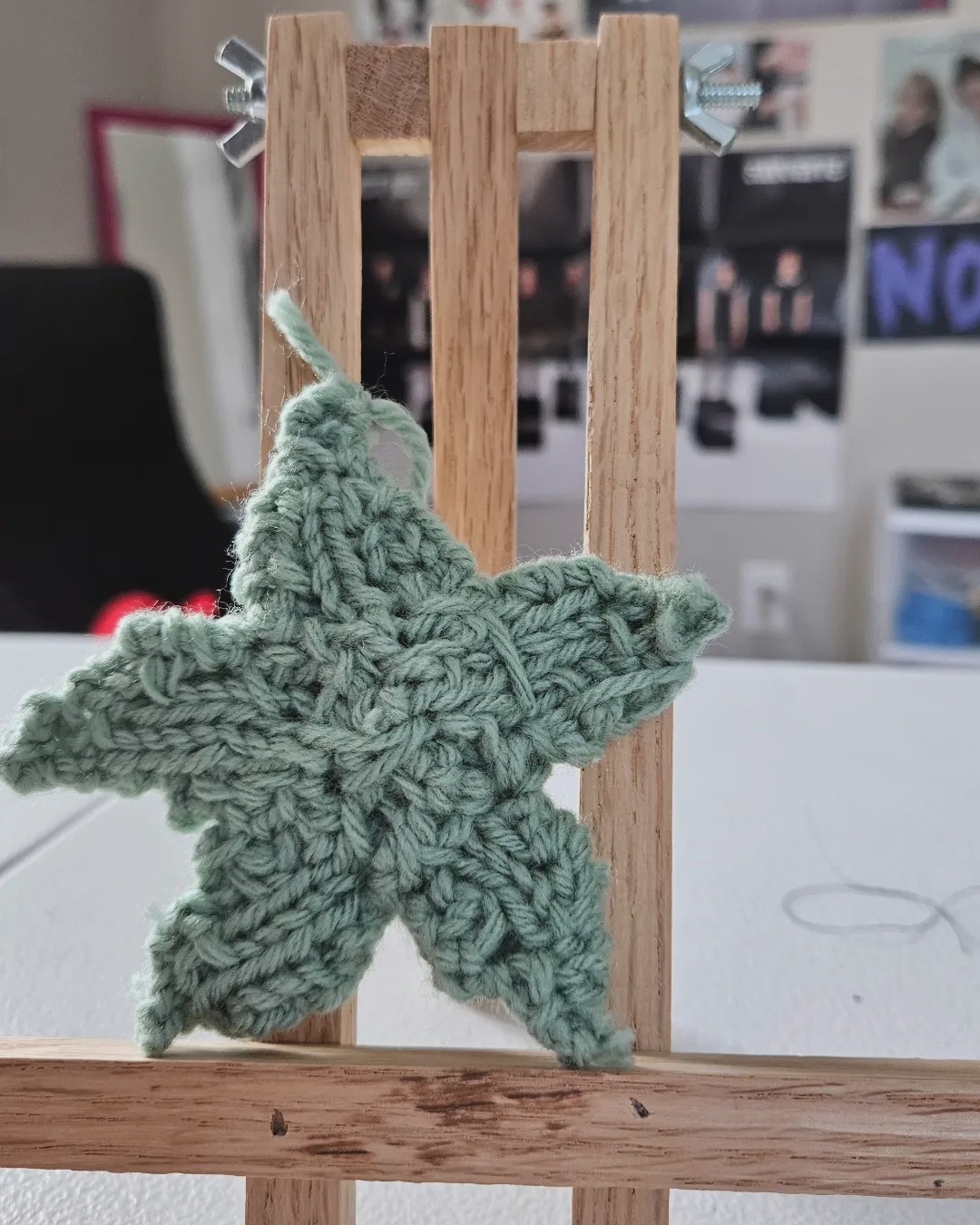 To continue my 2024 yarn stash-busting, I got a little creative with my process. I present this little mint-colored star! I’m so proud of her. I made this intending to make multiple stars to decorate my new noise-canceling headphones.