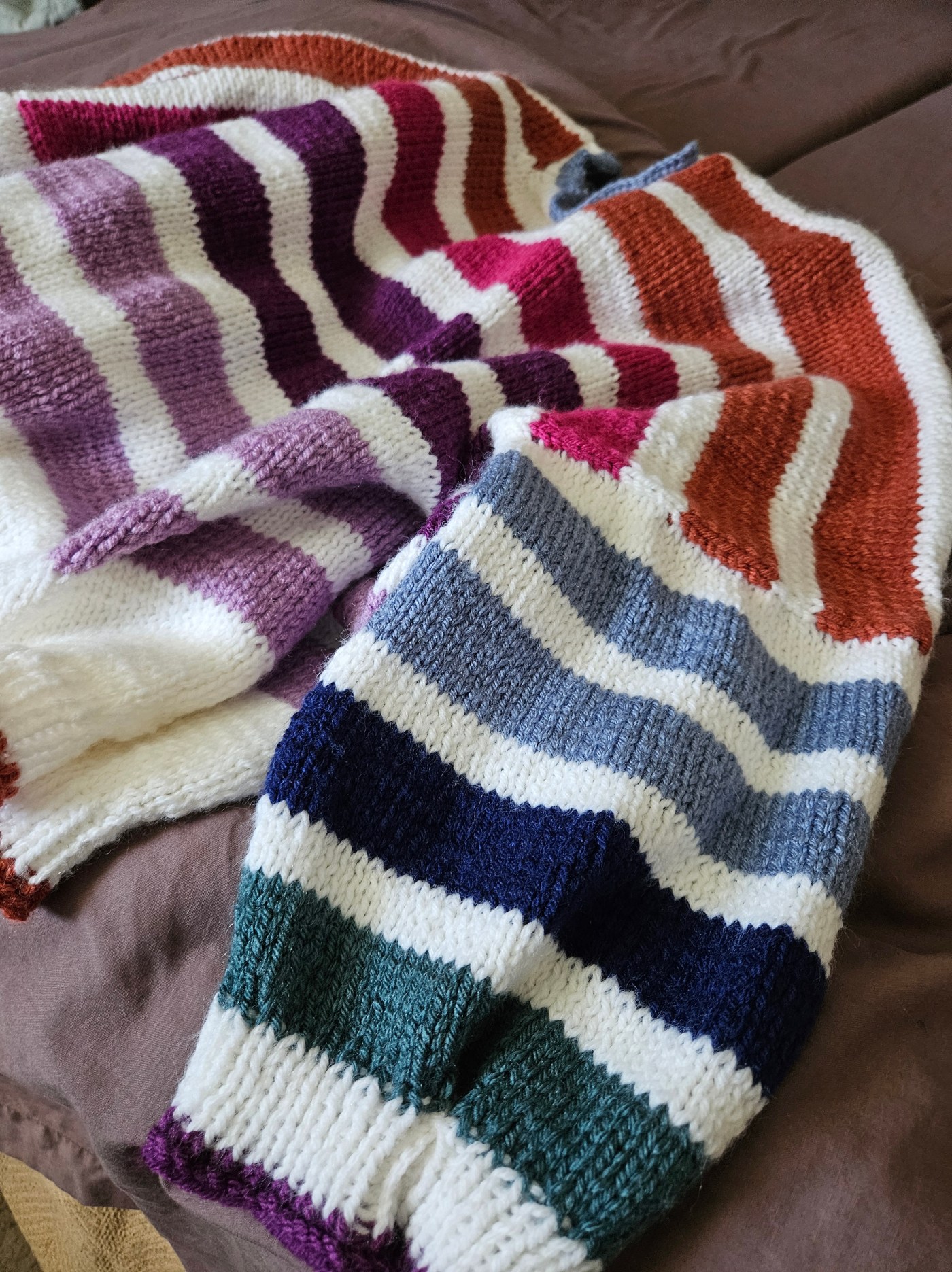 This is the only picture I saved from #6485 because it was so bad. It felt like a weird Star Wars dress. But I digress, with knitting, I would like to rectify my aversion to patterns to learn new skills and appreciate the creativity, celebrate even, the creativity and talent of my fellow knitwear designers. So I was inspired by Making Cassie’s Stripe Hype Sweater knitting project and through my move, I decided to use up leftover yarn in my stash to make a sweater someone else designed. It was one of the most rewarding knits I’ve made all year!