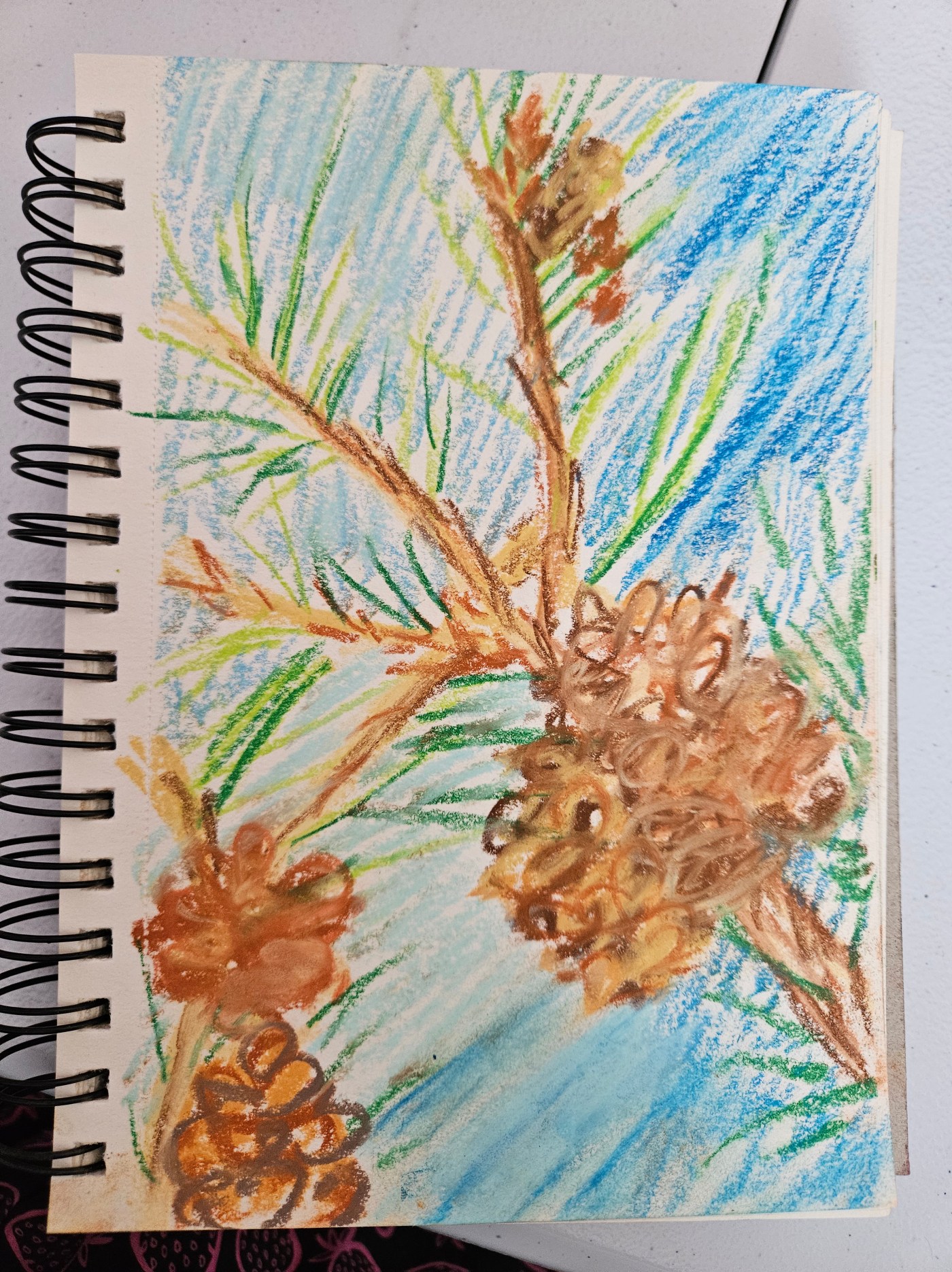 The other day, I was at the back of our property with Kyle with our tiller. Above us was this pine tree we believed to be mostly dead, yet behold these little pinecones were growing, cracking open actually. The sound was this bizarre melody of crackling, like rice krispies in milk.