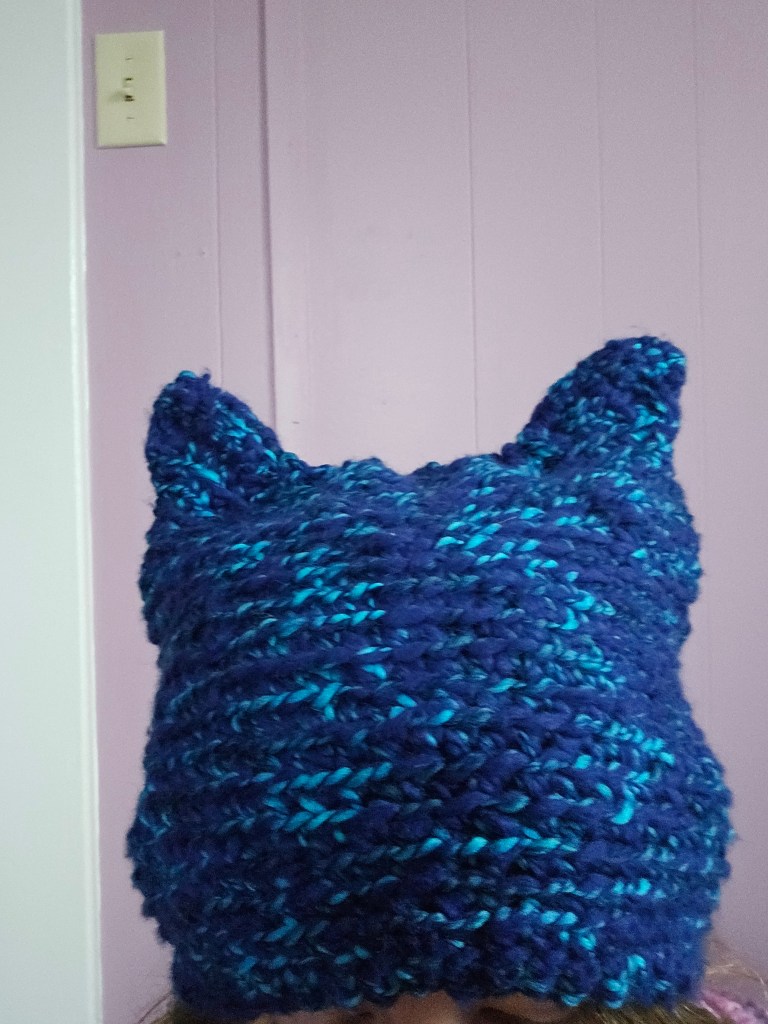 I’ve shared several animal ear projects on the blog before, the Cat Ear Beanie, and my Loverboy re-creation Bunny Hat, but now, without further ado, may I present the Bat Ear Beanie! This was made with less than 100 grams of local spun wool I found at my farmer’s market, held double with less than 100 grams of Knit Picks Snuggle Puff yarn in Neptune. I decided to crochet this hat instead of knitting, as I did with previous projects, to have a bit more freedom in the creation. Crochet reminds me of sculpture or papier-mache. You can always add onto the stitches in ways that the tension of knit stitches does not allow, and for that, the bat ear project seemed like a great place to practice my crochet technique once again.