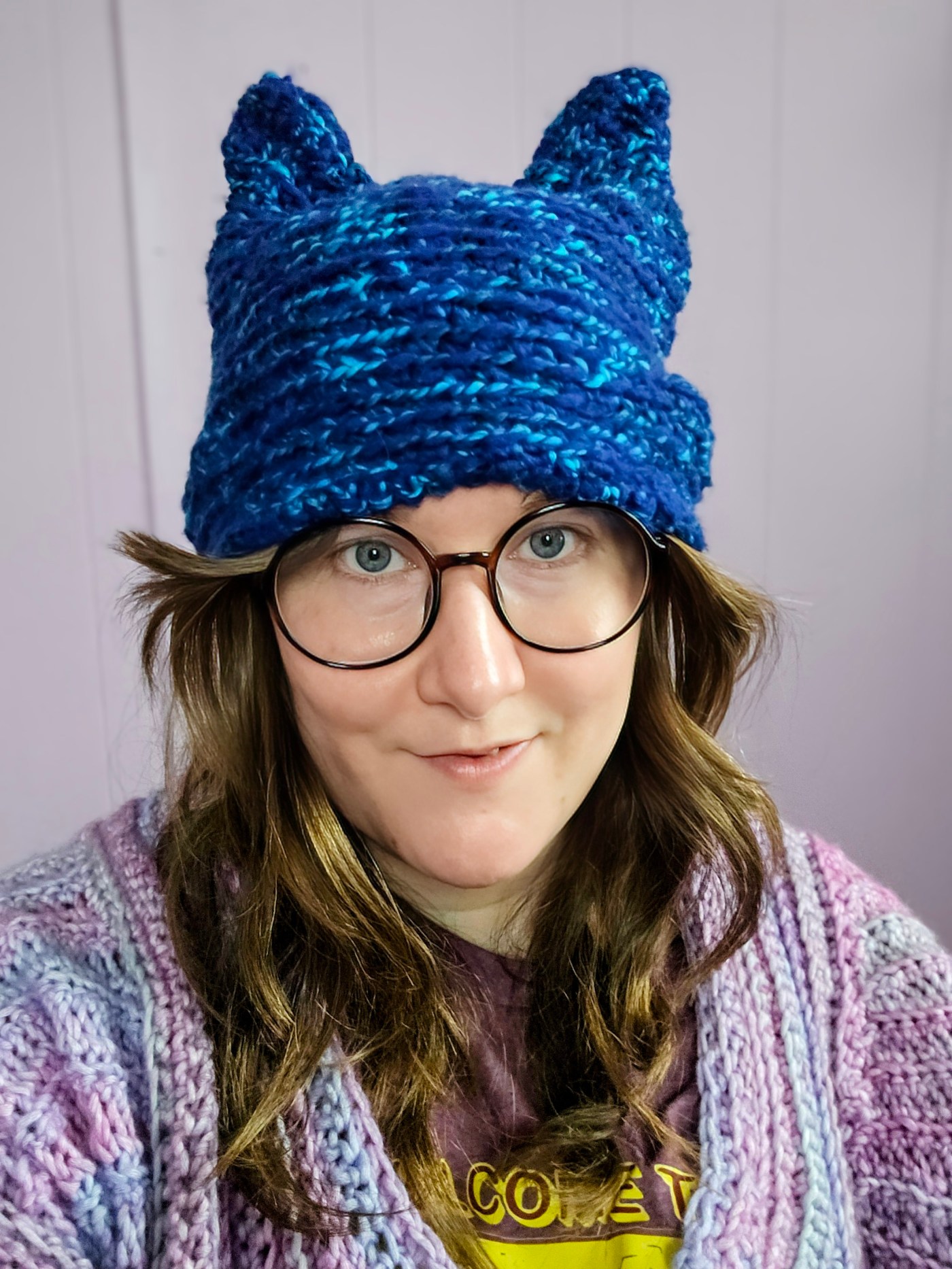 I’ve shared several animal ear projects on the blog before, the Cat Ear Beanie, and my Loverboy re-creation Bunny Hat, but now, without further ado, may I present the Bat Ear Beanie! This was made with less than 100 grams of local spun wool I found at my farmer’s market, held double with less than 100 grams of Knit Picks Snuggle Puff yarn in Neptune. I decided to crochet this hat instead of knitting, as I did with previous projects, to have a bit more freedom in the creation. Crochet reminds me of sculpture or papier-mache. You can always add onto the stitches in ways that the tension of knit stitches does not allow, and for that, the bat ear project seemed like a great place to practice my crochet technique once again.