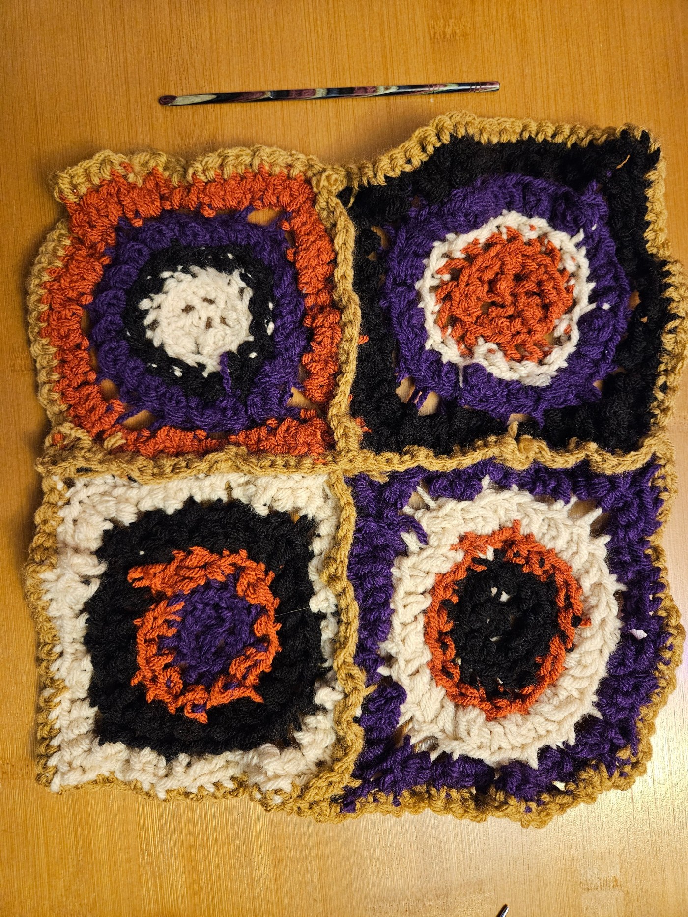 What made this a tangible thing for me to get started in community was the Welcome Blanket collection at my local yarn shop. Together, sections of knit and crochet squares would be collected and seamed into blankets, like receiving blankets, to welcome immigrants to the United States. With all the ICE-y conditions out there, it’s swimming against the current in a way that aligns with my beliefs and what we are called to do as Christians – love your neighbor and take care of immigrants. Not to worship power, money, and excuse racism like some so-called “Christians” in my country are doing. Seeing my crochet square stitched together with other like minded indivduals’ fiber art was powerful. It reminded me of how we are stronger together and how doing small things, as a community, makes a difference. I also enjoyed reflecting on my own immigrant heritage and sharing my story of how my family came to the US and why immigration is necessary.