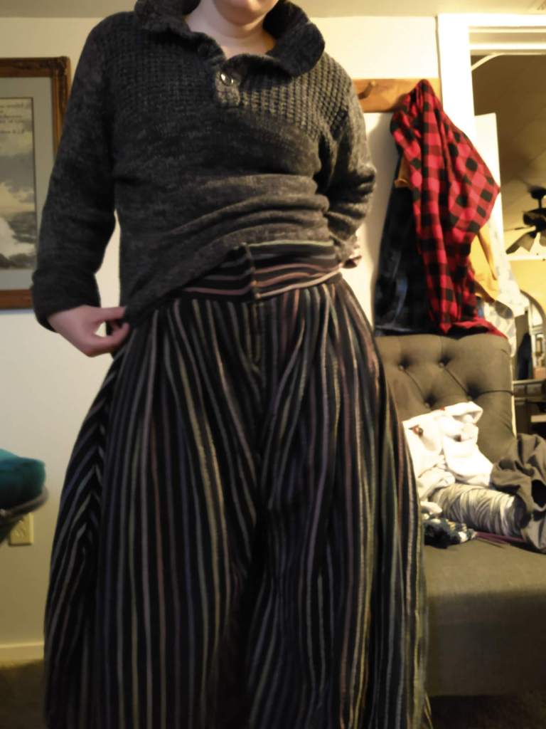 And so this game, Red Dead Redemption 2 with its 1899 time stamp and varied styles of architecture has brought me so much joy and comfort. Even the Bayou Nwa of Lemoyne is a delightful reminder of my time living in coastal Georgia. Especially the alligators, which seemed to lurk in every body of water. But those cypress trees still call, like the delightful menswear of Arthur Morgan’s wardrobe, and the wonderfully decorated towns of St. Denis, Strawberry, Rhodes, Valentine, Annesburg, and Blackwater. And so I find myself sewing Arthur Morgan-inspired pieces, for both myself and my husband. Who knows where inspiration will find you? I certainly didn’t think a Rockstar-developed video game would bring me such joy and fashion design inspiration. But it truly shows that inspiration is everywhere if you take the time to appreciate it.