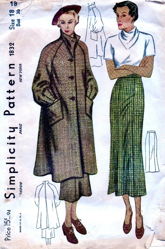 Oh my goodness, this coat is fabulous. I may try to track this down in the future just to try my hand at it because I love these style lines. I love the raglan sleeves with the contrast of the narrow 1930s skirt. It’s so chic.