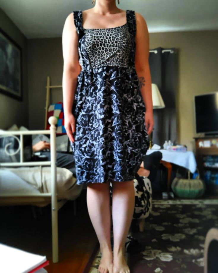 Long story short, my new me-made dress has surpassed my love for the original, thrifted dress. I love the animal print and the fact that this was a remnant fabric from Walmart yet I believe looks like it came from a higher-end fabric store.