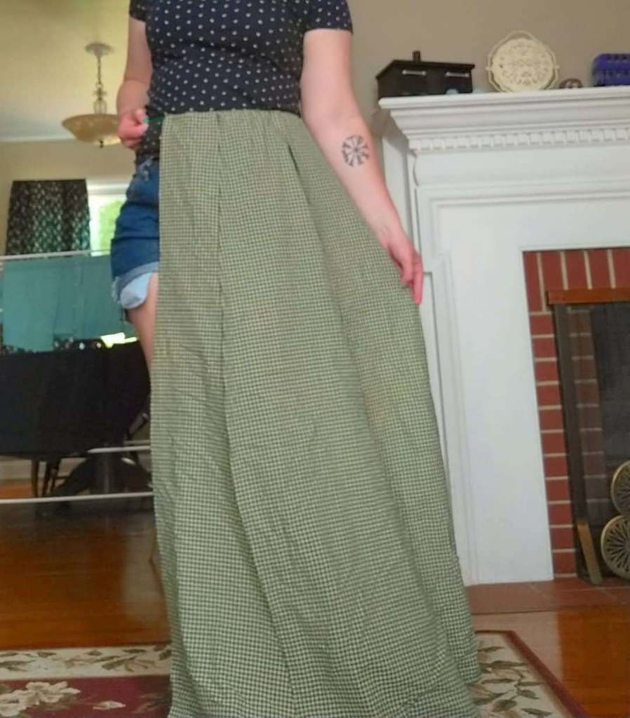 It was rude and such a breach of boundaries. Don’t ask random strangers if they are pregnant; wait for them to clearly tell you. It feels like a slap in the face for so many toxic culture reasons, the main one is the unwanted comment on your body with the double standard of “pregnancy being the most beautiful,” but don’t look pregnant, aka don’t be fat, because the zeitgeist is fat-phobic. I got rid of the dress and don’t have any photos saved of the dress; that’s how much this experience ruined the dress for me. I lacked the confidence to brush it off. I didn’t understand my body’s proportions and lines, therefore, I blamed my body and myself for the dress not working, instead of my tailoring skills being the problem.